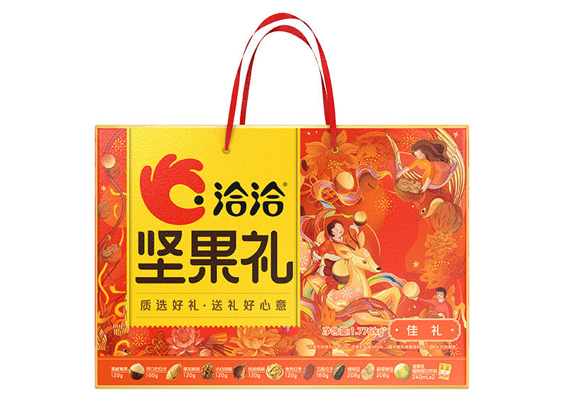 内容物:夏威夷果120g、开口巴旦木100g、纸皮核桃120g、草本核桃120g、小白杏核120g、免洗红枣120g、香瓜子180g、怪味豆208g、蒜香豌豆208g、坚果乳植物蛋白饮料240mL*2